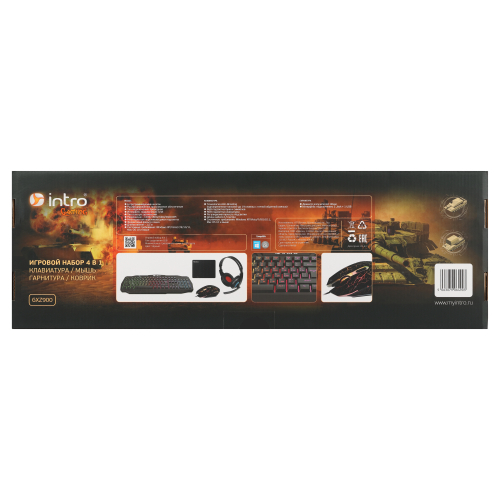 Игровой комплект из мыши, клавиатуры, гарнитуры и коврика для ПК.