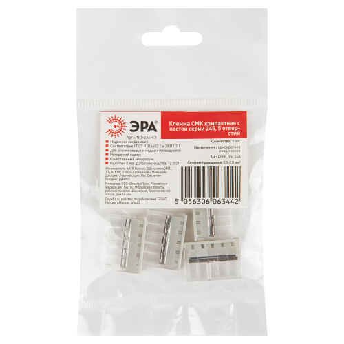 Клеммы применяется для присоединения и ответвления одножильных проводников из меди и алюминия и многожильных проводов с наконечником в электрических цепях переменного тока с частотой 50 Гц напряжением до 400 В. Компактные габариты позволяют экономить место в монтажном пространстве. Корпус клемм изготовлен из самозатухающего пластика.