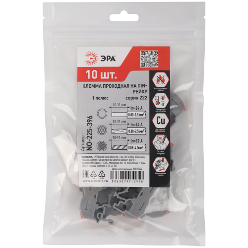 Универсальные проходные клеммы на DIN-рейку 222 серии с рычагами ЭРА предназначены для создания многократных соединений всех типов проводников (медных одножильных и многожильных, оконцованных втулочными наконечниками НШвИ) без использования специального инструмента. Применяются для сращивания проводников с последующей установкой на DIN-рейку, а также для организации проходного соединения при подключении осветительного и другого электрооборудования.