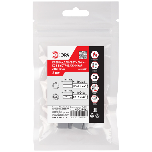 Быстрозажимные компактные клеммы для светильников 221 серии ЭРА предназначены для многократного соединения одножильных проводников с тонкими многожильными без использования специального инструмента. Применяются для быстрого и удобного подключения разнообразных осветительных приборов, таких как люстры, светильники, бра. в условиях ограниченного пространства.