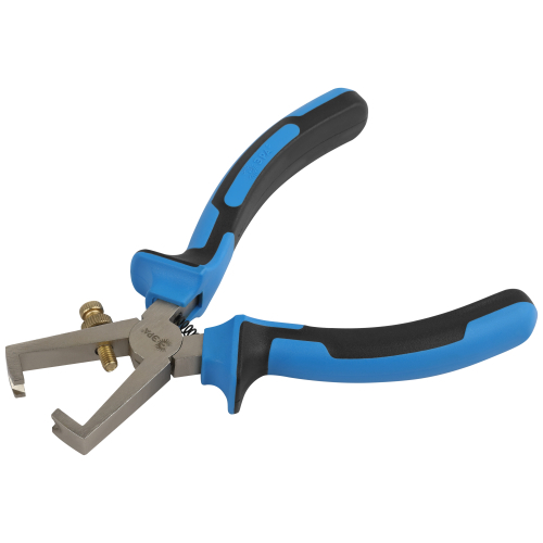Рассчитан на диаметр до 6.0 квадратов, более толстый провод вручную оголять тяжело. Между режущими наконечниками расположен винтовой ограничитель, с помощью которого устанавливается диаметр проводника. Расстояние между захватами выбирается немногим больше, чем диаметр токоведущей жилы. Это делается для снижения риска повредить металл. После сжимания рукояток, оболочка снимается резким движением вдоль провода.
