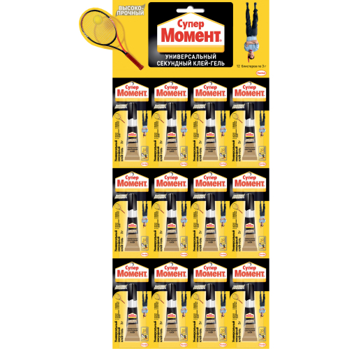 Супер Момент Высокопрочный является универсальным секундным клеем в форме геля, отлично подходит для соединения различных материалов. Водостойкий и термостойкий, обладает повышенной прочнойстю клеевого шва. Быстрый, прозрачный, не растекается.