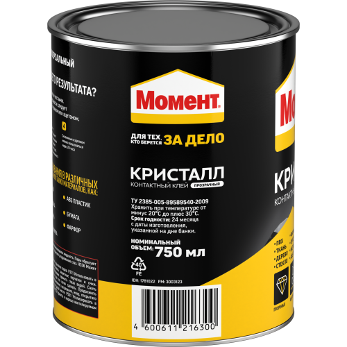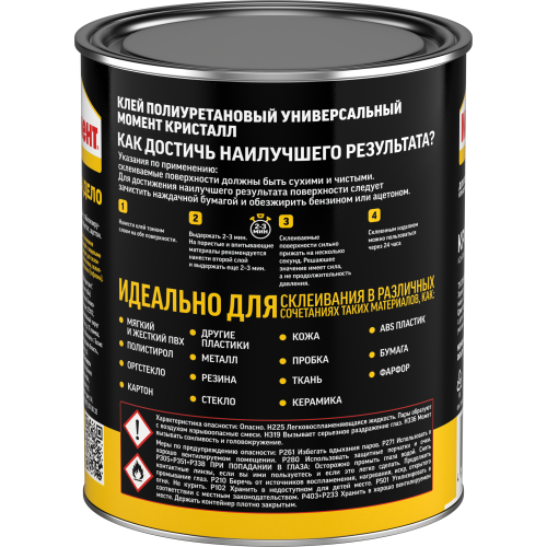 Поверхности должны быть сухими и чистыми. Гладкие поверхности рекомендуется зачистить наждачной бумагой для обеспечения лучшей адгезии. Ламинат и металл следует обезжирить бензином или ацетоном. Прижимайте от центра к краям, чтобы избежать скопления воздуха. Тщательно приклеивайте края. --- Клей необходимо равномерно нанести на обе склеиваемые поверхности, особенно тщательно по краям. Перед тем как соединить склеиваемые части, необходимо выдержать их при комнатной температуре примерно 15-20 минут. Аккуратно и точно соедините склеиваемые поверхности, и с усилием прижмите. Прочность склеивания зависит от силы приложенного давления. Давления в течение нескольких секунд достаточно. --- Очистите инструменты сразу после использования с помощью бензина --- Хранить плотно закрытым при температуре от -20°C до +30°C