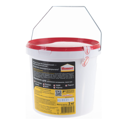 Поверхности должны быть сухими и чистыми. Перед склеиванием выдержите материалы при комнатной температуре. --- Нанесите клей на одну из поверхностей тонким ровным слоем. Соедините поверхности и прижмите их друг к другу на 15-20 минут. При склеивании температура окружающей среды не должна быть ниже чем +6С. Склеенные детали можно обрабатывать через 24 часа. --- Удаление остатков клея с инструментов и материалов производится с помощью воды. Засохший клей удаляется механическим способом. --- Хранить герметичным при температуре от плюс 5°C до плюс 30°C. По истечении срока годности высохшие остатки утилизировать как бытовой отход.