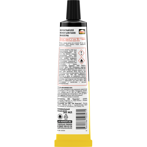 Подготовка поверхностей Уложите склеиваемые части линолеума внахлест друг на друга на 20-30 мм. На верхней части наметьте линию шва (посередине зоны нахлеста). Сильно прижимая верхнюю часть к нижней, прорежьте по линейке обе части линолеума насквозь. Уберите обрезки. На прорезанный и подготовленный для склеивания шов наклейте защитную малярную ленту и прорежьте по шву. Склеивание Встряхните тубу перед применением. Аккуратно проколите защитную мембрану на тубе и навинтите наконечник. Приподнимите край одной из склеиваемых частей и выдавите клей на срез таким образом, чтобы клей распределился равномерно по всей толщине данного среза. Уложите на место, обработанную клеем часть линолеума, плотно прижимая ее к основанию. После обработки клеем всего шва удалите излишки клея сухой чистой тканью. Через 10-15 мин удалите защитную малярную ленту. Открытое время применения 3-4 часа при температуре +20°С. Максимальная прочность склеивания достигается через 24 часа.