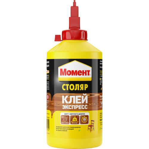 Универсальный влагостойкий клей для всех пород дерева на основе водной дисперсии. Надежно схватывает за 15 минут. Универсальный водостойкий клей на основе водной дисперсии, подходящий для всех пород дерева.