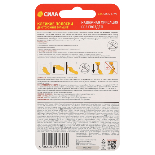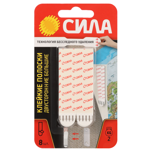 Сменные полоски СИЛА с технологией бесследного удаления созданы для крепления постеров, плакатов, карт, фотографий, календарей, расписаний и других легких предметов или в качестве запасной полоски для арт. Крючки для картин СИЛА SCH-P120-W2. Полоски являются прекрасной альтернативой двустороннему скотчу, булавкам и клею. Надежно держат и легко удаляются, не повреждая стен. С помощью полосок можно быстро и легко украсить интерьер. Никаких отверстий, повреждений краски или следов клея. Возможности декорирования безграничны! Максимальная нагрузка: 2 кг на 1 полоску или 16 кг на упаковку из 8 шт.