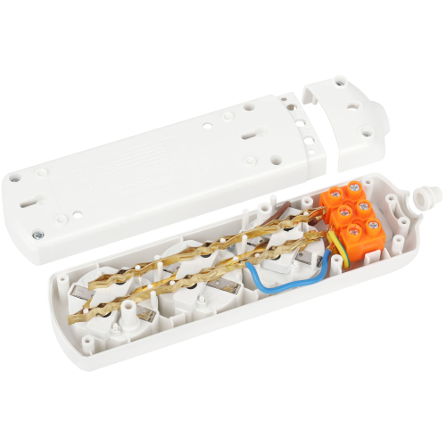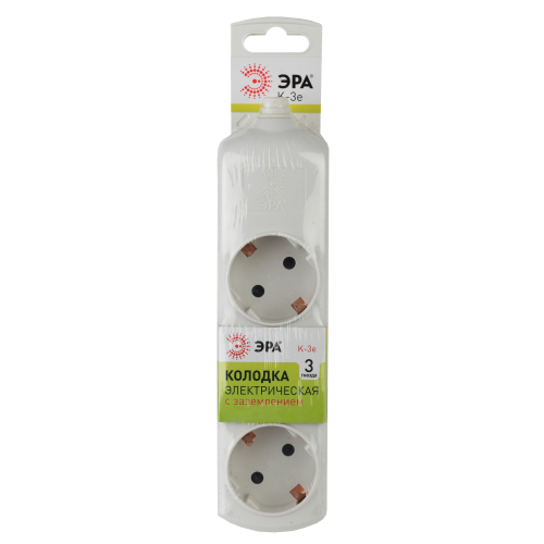 Колодка электрическая Эра K-3e с заземлением, 3 розетки. Корпус выполнен из ударопрочного и негорючего пластика. Рассчитана на максимальную мощность 16А / 3500 Вт и для подключения кабеля сечением до 1,5мм2. Электрическая колодка подойдет для тех, кто хочет сделать удлинитель самостоятельно. Также может использоваться как накладные розеточные блоке в подсобных помещениях.