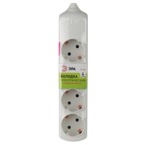 Колодка электрическая Эра K-4e с заземлением, 4 розетки. Корпус выполнен из ударопрочного и негорючего пластика. Рассчитана на максимальную мощность 16А / 3500 Вт и для подключения кабеля сечением до 1,5мм2. Электрическая колодка подойдет для тех, кто хочет сделать удлинитель самостоятельно. Также может использоваться как накладные розеточные блоке в подсобных помещениях.