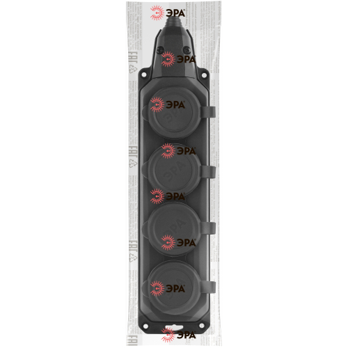 Колодка электрическая каучуковая Эра K-4e-B-IP44 c заземлением, 4 розетки. Корпус выполнен из пыле- и влага- защищенного материала (каучук). Рассчитана на максимальную мощность 16А / 3500 Вт и для подключения кабеля сечением до 2,5 мм2. Электрическая колодка подойдет для тех, кто хочет сделать удлинитель самостоятельно. Также может использоваться, как накладные розеточные блоки в подсобных помещениях.