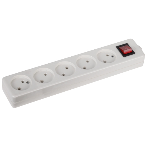 Колодка ЭРА K-5s. На 5 розеток без зазeмления с выключателем. Максимальная мощность 10 А/2200. Для кабеля сечением до 2x1мм2.