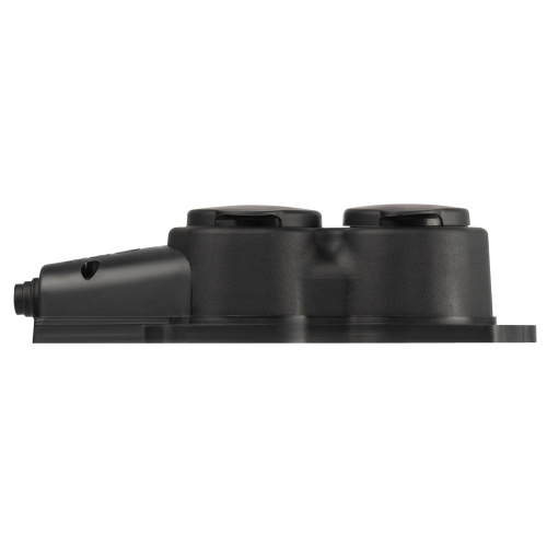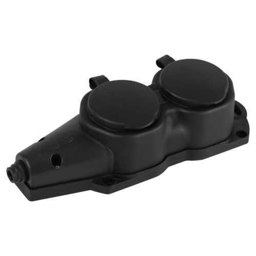 Каучуковая колодка ЭРА KX-2e-B-IP44 2 гнезда, черная, с заземлением, для подключения кабеля (без разбора корпуса). Съёмная крышка. IP44-защита от пыли и влаги. Максимальная мощность 16А/3500Вт. Для кабеля сечением до 3x2,5мм2.