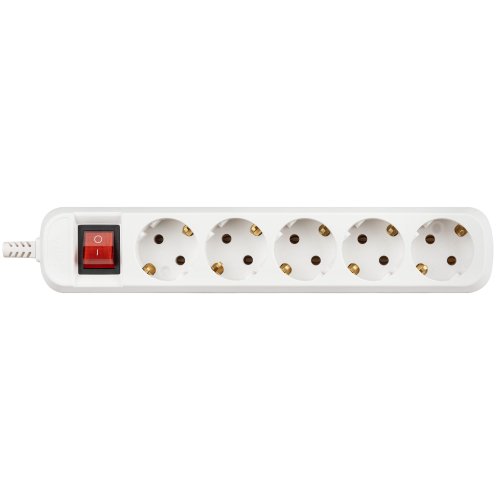 Колодка ЭРА KX-5es на 5 розеток с заземлением с выключателем белая. Максимальная мощность - 16 А/3500 Вт. Для кабеля до 3х1,5мм2