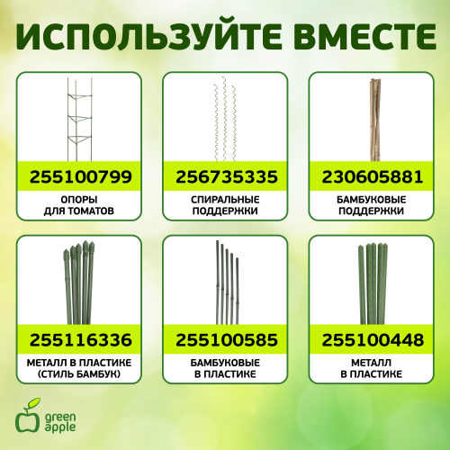 Кольца используются для подвязки хрупких растений, легко гнется и не травмирует. Применяется для закрепления растений на опоре, предотвращая повреждения и стимулируя правильный рост. Кольцо с защелкой надежно фиксирует растение, но бережно удерживает стебель, не нанося вреда. Держатель аккуратно зафиксирует стебель в вертикальном положении, не пережимая его и принесет пользу растению, помогая ему расти в правильном направлении. С профессиональными садовыми аксессуарами GREEN APPLE работа в саду всегда в удовольствие!