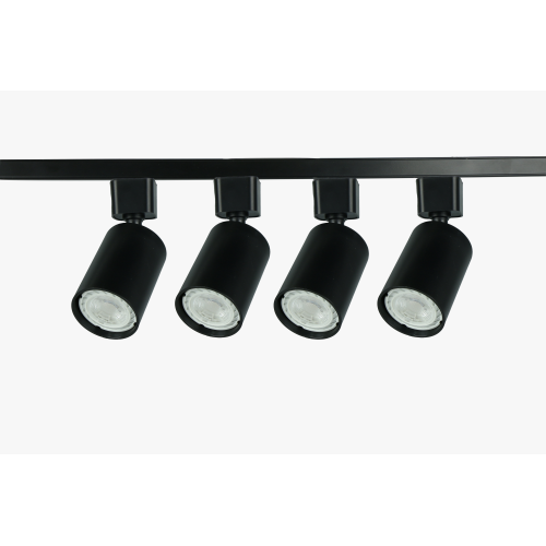 Набор трековых светильников TR70-SET4-GU10, который предназначен для освещения бытовых интерьеров. Комплектация набора: 4 трековых светильника черного цвета с цоколем GU10, однофазный шинопровод 80 см, ввод питания и боковая заглушка.