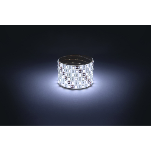В составе комплекта: LED лента на двустороннем скотче, источник питания, коннекторы. Рабочее напряжение ленты составляет 12В, а мощность равна 14,4 Вт/м. Светодиодная лента обладает световым потоком 400 Лм/м, и цветом свечения - холодный белый (6500 K)