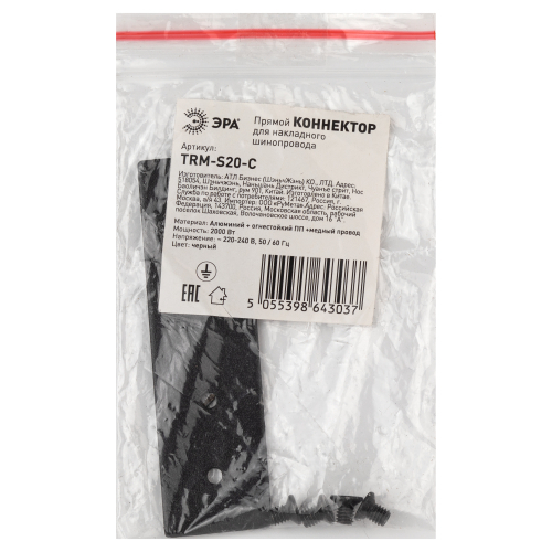 Прямой коннектор для накладных магнитных трековых шинопроводов низковольной системы освещения NOVA TRM-S20. Предназначен для механической стыковки двух последовательно расположенных отрезков шинопровода. Материал - металл.