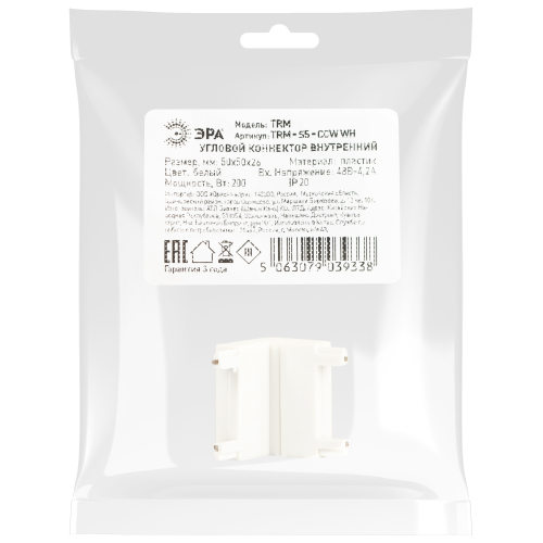 Угловой коннектор внутренний для ультратонкой низковольтной трековой системы. Вход. напряжение 48 вольт.