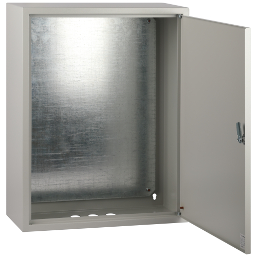 Щит изготовлен из качественной российской стали, имеет жесткий сварной корпус (метод многоточечной сварки) и высококачественное эпоксидно-полиэфирное порошковое наружное покрытие, которое защищает щит и размещенное в нем оборудования от воздействия окружающей среды. Дверки щита высотой от 650 мм имеют дополнительный блок жесткости и усиленные замки. Монтажная панель выполнена из оцинкованной стали, толщина стали от 1-1,2 мм.