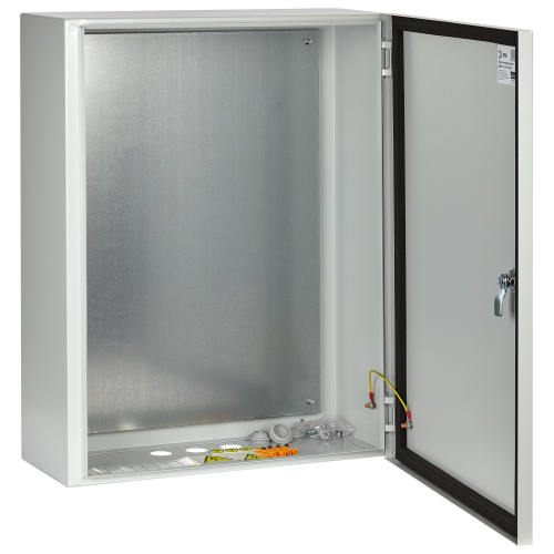 • Замок + 2 ключа; • Заземляющий проводник для дверцы; • Знаки электробезопасности; • Монтажный комплект; • Паспорт изделия; • Сальники для ввода кабеля (для шкафов с IP54);