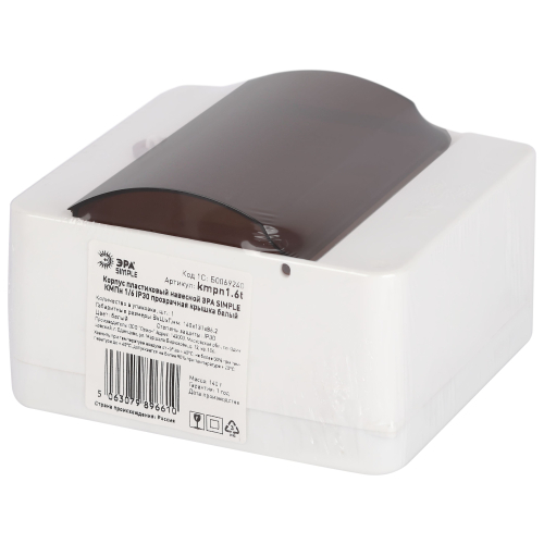 ЭРА Бокс навесной КМПн с прозр.крышкой степень защиты IP30, Предназначен для установки модульных устройств распределения электрической энергии, а также защиты сетей напряжением до 400 В от токов перегрузки и короткого замыкания. Применяется в гражданском строительстве, частном секторе, на промышленных, инфраструктурных объектах.Преимущества: Простой и быстрый монтаж. Подходят для установки автоматических выключателей шириной до 18 мм.Интегрированные петли для опломбировки- защита от хищений электроэнергии и от несанкционированного доступа к контактной группе.Защитные светопрозрачные крышки для защиты модульного оборудования.