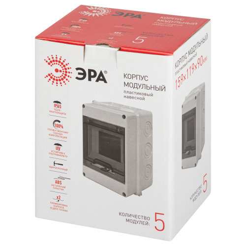 Корпуса модульные пластиковые серии КМПн IP65 ЭРА- предназначены для сборки распределительных щитов с использованием модульной аппаратуры, для ввода и распределения электрической энергии, а также защиты сетей напряжением до 400 В от токов перегрузки и короткого замыкания. Повышенная степень защиты корпуса позволяет использовать их в помещениях с большим содержанием пыли и влаги, например, в гаражах, производственных помещениях, подвалах, автомойках, на складах, а также на открытом воздухе. Преимущества корпусов : Изготовлены из пластика, не поддерживающего горение. Высокая технологичность и простой и быстрый монтаж. Высококачественный полиуретановый уплотнитель обеспечивает дополнительную защиту корпуса от влаги и пыли. Возможность опломбировки корпуса. Для защиты пыли и влаги использован принцип тоннельного уплотнения. Расширенный диапазон рабочих температур от -40°С до +75°С. Материал корпуса устойчив к воздействию ультрафиолета.