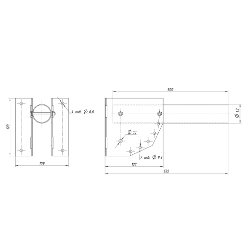 Кронштейн для уличного (клнсольного) светильника с переменным углом 500*120*112 d48mm