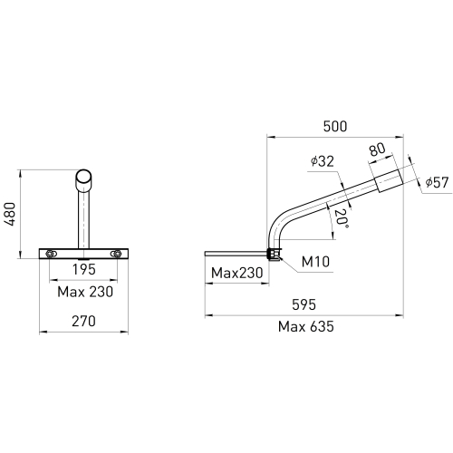 Кронштейн на опору с 1 хомутом, для уличного (консольного) светильника, вылет 350мм