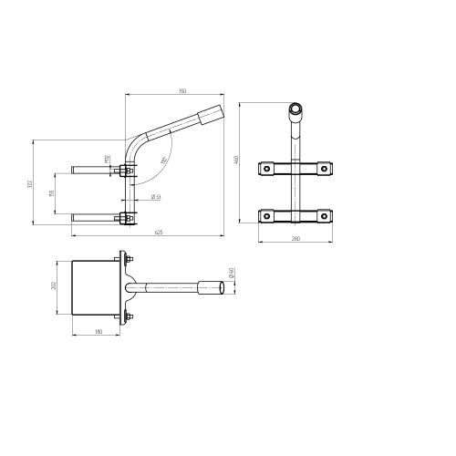 Кронштейн на опору с 2 хомутами, для уличного (консольного) светильника, вылет 350мм