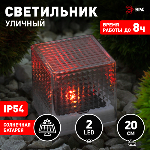 Привнеси в садовое убранство ярких красок теперь не составит труда: в этом Вам поможет садовая фигура L-PL20-СUB Куб от бренда ЭРА! Уникальный переливающийся дизайн поможет создать романтичную атмосферу. Уличный светильник выполнен из пластика, имеет высоту 20 см. Устройство работает от солнечной батареи. Данный способ получения энергии является наиболее экологичным, энергоемким, а также бесшумным. Питание происходит во включенном режиме, днем. Подсветка реагирует на недостаток света сама и загорается с наступлением ночи. LED диоды светят ярким светом, переливаясь желтым, красным, зеленым и синим цветами. Куб похож на своеобразный волшебный камень, наблюдать за которым одно удовольствие! Непрерывное освещение рассчитано на 8 часов. Высокая степень защиты от пыли и влаги позволяет оставлять садовую фигурку на улице даже во время непогоды. Обращаем Ваше внимание, что перед использованием фигурки её необходимо включить и зарядить. Светильник заряжается в течение всего светового дня. Уличный светильник на солнечной батарее от компании ЭРА сделает Ваш загородный отдых в разы ярче!