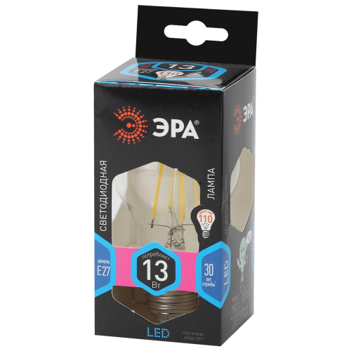 Светодиодная филаментная лампа (с нитевидными светодиодами) серии F-LED. Лампа премиального сегмента. Максимально похожа на лампу накаливания, может использоваться в дизайнерских интерьерах. Угол рассеивания светового потока 360 градусов.