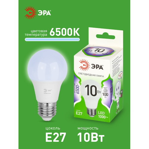 Светодиодная лампа ЭРА LED A60-10W-865-E27 GL серии Green Line — эффективное решение для основного освещения. Лампочка Е27 мощностью 10 Вт излучает холодный белый свет (6500K) без мерцания. Классическая колба A60 (груша) и стандартный цоколь E27 делают её совместимой с люстрами, бра, настольными и напольными светильниками. Высота лампы: 108 мм. Светодиоды потребляют меньше электроэнергии и служат значительно дольше традиционных ламп накаливания: до 30 000 часов. Работает от сети 220 В, эквивалентна 80 Вт лампе накаливания. Светодиодные лампы ЭРА подходят для жилых и коммерческих помещений и обеспечивают стабильное освещение.