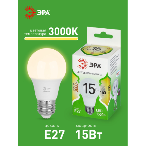 Светодиодная лампа ЭРА LED A60-15W-830-E27 GL серии Green Line — эффективное решение для основного освещения. Лампочка Е27 мощностью 15 Вт излучает теплый белый свет (3000K) без мерцания. Классическая колба A60 (груша) и стандартный цоколь E27 делают её совместимой с люстрами, бра, настольными и напольными светильниками. Высота лампы: 108 мм. Светодиоды потребляют меньше электроэнергии и служат значительно дольше традиционных ламп накаливания: до 30 000 часов. Работает от сети 220 В, эквивалентна 80 Вт лампе накаливания. Светодиодные лампы ЭРА подходят для жилых и коммерческих помещений и обеспечивают стабильное освещение.