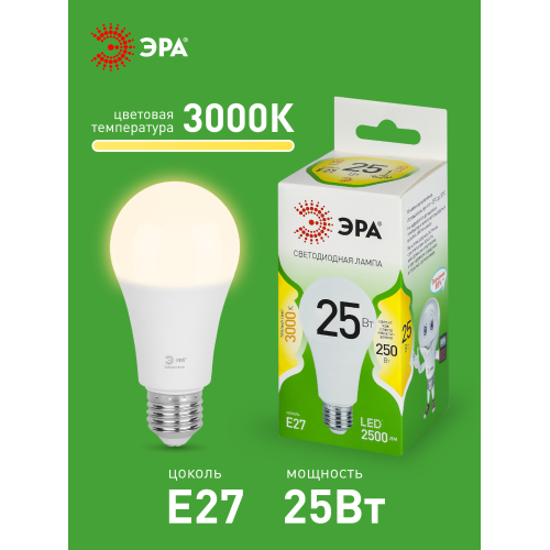 Светодиодная лампа ЭРА LED A60-25W-830-E27 GL серии Green Line — эффективное решение для основного освещения. Лампочка Е27 мощностью 25 Вт излучает теплый белый свет (3000K) без мерцания. Классическая колба A60 (груша) и стандартный цоколь E27 делают её совместимой с люстрами, бра, настольными и напольными светильниками. Высота лампы: 108 мм. Светодиоды потребляют меньше электроэнергии и служат значительно дольше традиционных ламп накаливания: до 30 000 часов. Работает от сети 220 В, эквивалентна 80 Вт лампе накаливания. Светодиодные лампы ЭРА подходят для жилых и коммерческих помещений и обеспечивают стабильное освещение.