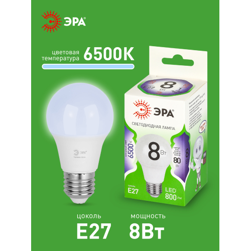 Светодиодная лампа ЭРА LED A60-8W-865-E27 GL серии Green Line — эффективное решение для основного освещения. Лампочка Е27 мощностью 8 Вт излучает холодный белый свет (6500K) без мерцания. Классическая колба A60 (груша) и стандартный цоколь E27 делают её совместимой с люстрами, бра, настольными и напольными светильниками. Высота лампы: 108 мм. Светодиоды потребляют меньше электроэнергии и служат значительно дольше традиционных ламп накаливания: до 30 000 часов. Работает от сети 220 В, эквивалентна 80 Вт лампе накаливания. Светодиодные лампы ЭРА подходят для жилых и коммерческих помещений и обеспечивают стабильное освещение.