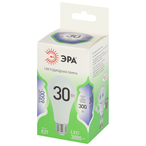 Светодиодная лампа ЭРА LED A65-30W-865-E27 GL серии Green Line — это мощный и энергоэффективный источник света, заменяющий традиционные лампы накаливания. Лампочка с цоколем E27 и потребляемой мощностью 30 Вт излучает холодный белый свет (6500K) без мерцания. Увеличенная форма A65 (груша) и стандартный цоколь E27 позволяют использвать лампу в люстрах, потолочных светильниках, торшерах и бра. Высота лампы: 130 мм. Работает от сети 220 В, эквивалентна 300 Вт лампе накаливания. Светодиодные лампы ЭРА отличаются высокой яркостью, долгим сроком службы и низким энергопотреблением. Идеально подходят для освещения жилых, офисных и коммерческих помещений. Не нагреваются и устойчивы к перепадам напряжения.