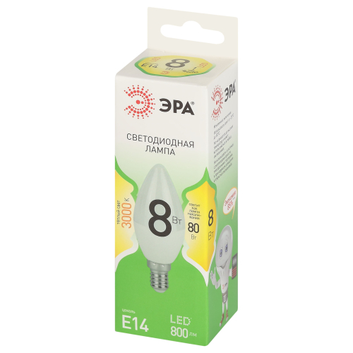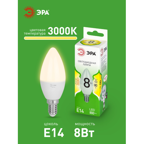Светодиодная лампа ЭРА LED B35-8W-830-E14 GL серии Green Line — это яркий и экономичный источник света, заменяющий лампы накаливания. Лампочка с цоколем Е14 и мощностью 8 Вт излучает теплый белый свет (3000K) без мерцания. Элегантная форма B35 (свеча) и компактный цоколь E14 позволяют использвать лампу в люстрах, бра, настольных и декоративных светильниках. Высота лампы: 100 мм. Работает от сети 220 В, эквивалентна 80 Вт лампе накаливания. Светодиодные лампы ЭРА потребляют минимум энергии и не нагреваются. Подходят для дома, гостиниц, ресторанов и коммерческих помещений, сочетая стиль и функциональность.