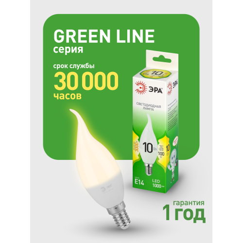 Светодиодная лампа ЭРА LED BXS-10W-830-E14 GL серии Green Line — это яркий и экономичный источник света, заменяющий лампы накаливания. Лампочка с цоколем Е14 и мощностью 10 Вт излучает теплый белый свет (3000K) без мерцания. Элегантная форма BXS (свеча на ветру) и стандартный цоколь E14 позволяют использвать лампу в люстрах, бра, настольных и декоративных светильниках. Высота лампы: 125 мм. Работает от сети 220 В, эквивалентна 100 Вт лампе накаливания. Светодиодные лампы ЭРА потребляют минимум энергии и не нагреваются. Подходят для дома, гостиниц, ресторанов и коммерческих помещений, сочетая стиль и функциональность.