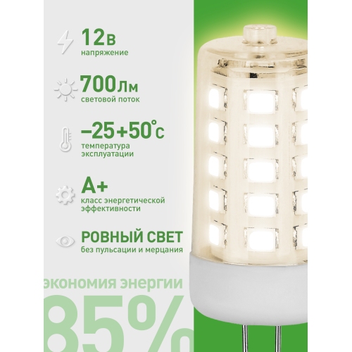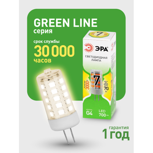 Светодиодная лампочка ЭРА LED G4-JC-7W-830-12V GL серии Green Line — экономичная и долговечная альтернатива галогенным аналогам. Лампочка G4 мощностью 7 Вт с теплым белым светом (3000K) обеспечивает равномерное освещение. Компактная капсульная форма позволяет использовать её в точечных светильниках, декоративных люстрах, витринах и мебельной подсветке. Работает от напряжения 12 В, что делает её идеальной для жилых помещений, гостиниц, ресторанов и торговых залов. Светодиодные лампы от ЭРА отличаются низким энергопотреблением и долгим сроком службы.