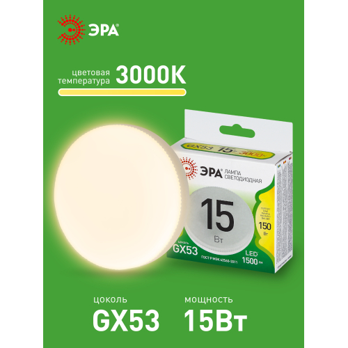 Светодиодная лампа ЭРА LED GX-15W-830-GX53 GL серии Green Line — современный и экономичный аналог лампы накаливания. Лампочка с цоколем GX53 и мощностью 15 Вт излучает теплый белый свет (3000K), создавая комфортное освещение. Плоская форма плафона и универсальный размер 75 мм позволяют использовать её в потолочных светильниках, настенных бра и мебельной подсветке. Такая светодиодная лампа подойдет для дома, офисов, магазинов и гостиниц. Потребляет минимум энергии, не нагревается и служит значительно дольше традиционных ламп накаливания. Работает от сети 220 В, эквивалентна 150 Вт лампе накаливания.