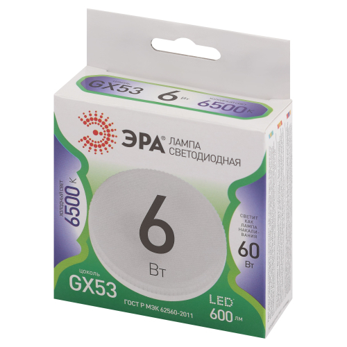 Светодиодная лампа ЭРА LED GX-6W-865-GX53 GL серии Green Line — современный и экономичный аналог лампы накаливания. Лампочка с цоколем GX53 и мощностью 6 Вт излучает холодный белый свет (6500K), создавая комфортное освещение. Плоская форма плафона и универсальный размер 75 мм позволяют использовать её в потолочных светильниках, настенных бра и мебельной подсветке. Такая светодиодная лампа подойдет для дома, офисов, магазинов и гостиниц. Потребляет минимум энергии, не нагревается и служит значительно дольше традиционных ламп накаливания. Работает от сети 220 В, эквивалентна 60 Вт лампе накаливания.