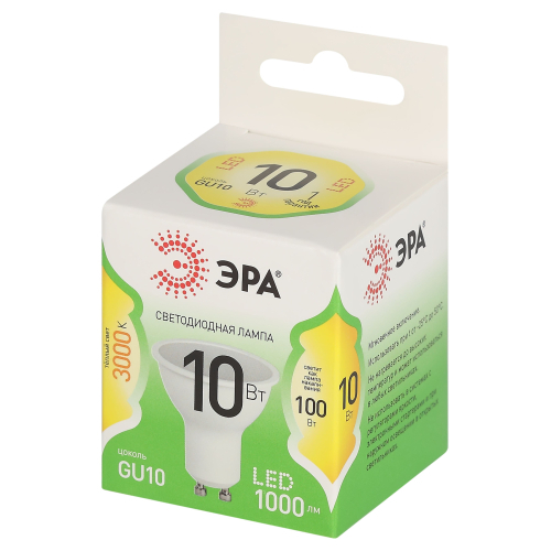 Светодиодная лампа ЭРА LED MR16-10W-830-GU10 GL серии Green Line — современный и энергоэффективный источник света. Лампочка мощностью 10 Вт с цоколем GU10 излучает теплый белый свет (3000K) без мерцания. Форма MR16 с отражателем обеспечивает направленный световой поток и идеально подходит для акцентного и основного освещения: в точечных светильниках, трековых системах, витринах и подвесных конструкциях. Потребляет минимум энергии, не нагревается, устойчива к перепадам напряжения и обеспечивает стабильное свечение. Работает от сети 220 В, эквивалентна 100 Вт лампе накаливания. Отличное решение для дома, офисов, магазинов, кафе и гостиниц.