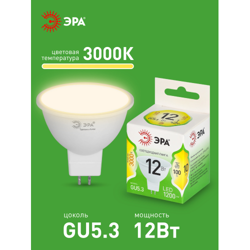Светодиодная лампа ЭРА LED MR16-12W-830-GU5.3 GL серии Green Line — современный и энергоэффективный источник света. Лампочка мощностью 12 Вт с цоколем GU5.3 излучает теплый белый свет (3000K) без мерцания. Форма MR16 с отражателем обеспечивает направленный световой поток и идеально подходит для акцентного и основного освещения: в точечных светильниках, трековых системах, витринах и подвесных конструкциях. Потребляет минимум энергии, не нагревается, устойчива к перепадам напряжения и обеспечивает стабильное свечение. Работает от сети 220 В, эквивалентна 120 Вт лампе накаливания. Отличное решение для дома, офисов, магазинов, кафе и гостиниц.