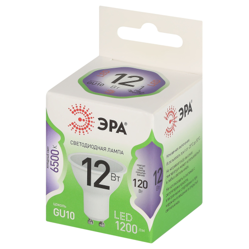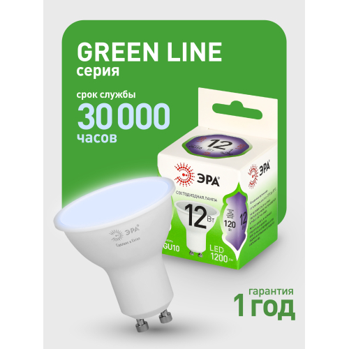 Светодиодная лампа ЭРА LED MR16-12W-865-GU10 GL серии Green Line — современный и энергоэффективный источник света. Лампочка мощностью 12 Вт с цоколем GU10 излучает холодный белый свет (6500K) без мерцания. Форма MR16 с отражателем обеспечивает направленный световой поток и идеально подходит для акцентного и основного освещения: в точечных светильниках, трековых системах, витринах и подвесных конструкциях. Потребляет минимум энергии, не нагревается, устойчива к перепадам напряжения и обеспечивает стабильное свечение. Работает от сети 220 В, эквивалентна 120 Вт лампе накаливания. Отличное решение для дома, офисов, магазинов, кафе и гостиниц.