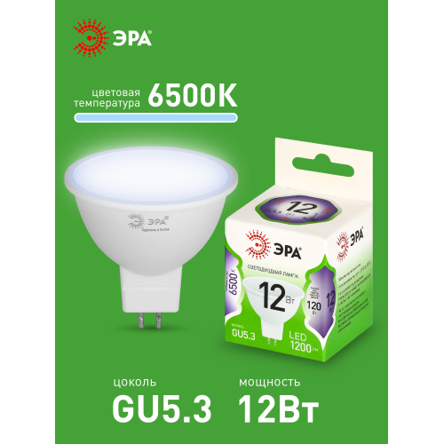 Светодиодная лампа ЭРА LED MR16-12W-865-GU5.3 GL серии Green Line — современный и энергоэффективный источник света. Лампочка мощностью 12 Вт с цоколем GU5.3 излучает холодный белый свет (6500K) без мерцания. Форма MR16 с отражателем обеспечивает направленный световой поток и идеально подходит для акцентного и основного освещения: в точечных светильниках, трековых системах, витринах и подвесных конструкциях. Потребляет минимум энергии, не нагревается, устойчива к перепадам напряжения и обеспечивает стабильное свечение. Работает от сети 220 В, эквивалентна 120 Вт лампе накаливания. Отличное решение для дома, офисов, магазинов, кафе и гостиниц.
