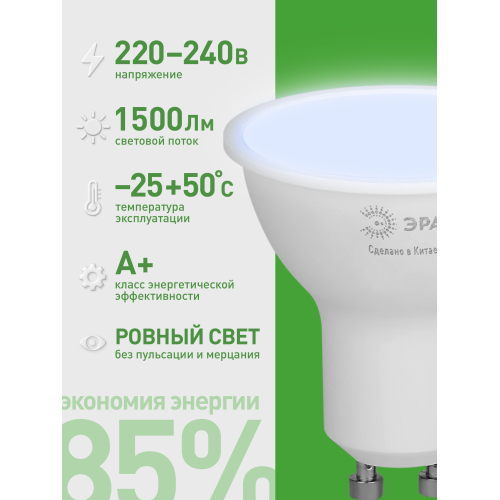 Светодиодная лампа ЭРА LED MR16-15W-865-GU10 GL серии Green Line — современный и энергоэффективный источник света. Лампочка мощностью 15 Вт с цоколем GU10 излучает холодный белый свет (6500K) без мерцания. Форма MR16 с отражателем обеспечивает направленный световой поток и идеально подходит для акцентного и основного освещения: в точечных светильниках, трековых системах, витринах и подвесных конструкциях. Потребляет минимум энергии, не нагревается, устойчива к перепадам напряжения и обеспечивает стабильное свечение. Работает от сети 220 В, эквивалентна 150 Вт лампе накаливания. Отличное решение для дома, офисов, магазинов, кафе и гостиниц