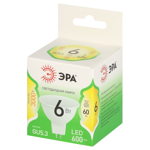 Светодиодная лампа ЭРА LED MR16-6W-830-GU5.3 GL серии Green Line — современный и энергоэффективный источник света. Лампочка мощностью 6 Вт с цоколем GU5.3 излучает теплый белый свет (3000K) без мерцания. Форма MR16 с отражателем обеспечивает направленный световой поток и идеально подходит для акцентного и основного освещения: в точечных светильниках, трековых системах, витринах и подвесных конструкциях. Потребляет минимум энергии, не нагревается, устойчива к перепадам напряжения и обеспечивает стабильное свечение. Работает от сети 220 В, эквивалентна 60 Вт лампе накаливания. Отличное решение для дома, офисов, магазинов, кафе и гостиниц.