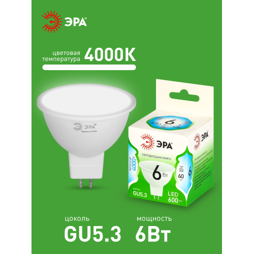 Светодиодная лампа ЭРА LED MR16-6W-840-GU5.3 GL серии Green Line — современный и энергоэффективный источник света. Лампочка мощностью 6 Вт с цоколем GU5.3 излучает нейтральный белый свет (4000K) без мерцания. Форма MR16 с отражателем обеспечивает направленный световой поток и идеально подходит для акцентного и основного освещения: в точечных светильниках, трековых системах, витринах и подвесных конструкциях. Потребляет минимум энергии, не нагревается, устойчива к перепадам напряжения и обеспечивает стабильное свечение. Работает от сети 220 В, эквивалентна 60 Вт лампе накаливания. Отличное решение для дома, офисов, магазинов, кафе и гостиниц.