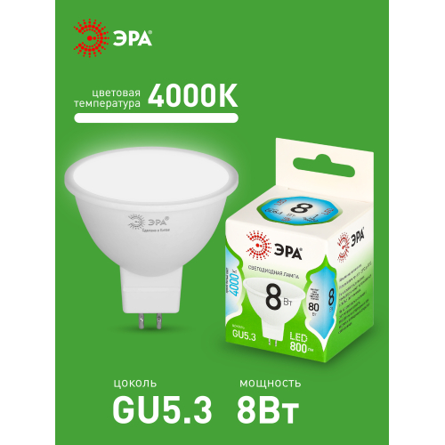 Светодиодная лампа ЭРА LED MR16-8W-840-GU5.3 GL серии Green Line — современный и энергоэффективный источник света. Лампочка мощностью 8 Вт с цоколем GU5.3 излучает нейтральный белый свет (4000K) без мерцания. Форма MR16 с отражателем обеспечивает направленный световой поток и идеально подходит для акцентного и основного освещения: в точечных светильниках, трековых системах, витринах и подвесных конструкциях. Потребляет минимум энергии, не нагревается, устойчива к перепадам напряжения и обеспечивает стабильное свечение. Работает от сети 220 В, эквивалентна 80 Вт лампе накаливания. Отличное решение для дома, офисов, магазинов, кафе и гостиниц.