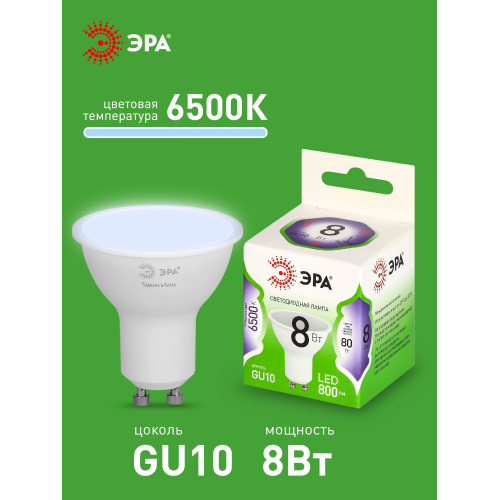 Светодиодная лампа ЭРА LED MR16-8W-865-GU10 GL серии Green Line — современный и энергоэффективный источник света. Лампочка мощностью 8 Вт с цоколем GU10 излучает холодный белый свет (6500K) без мерцания. Форма MR16 с отражателем обеспечивает направленный световой поток и идеально подходит для акцентного и основного освещения: в точечных светильниках, трековых системах, витринах и подвесных конструкциях. Потребляет минимум энергии, не нагревается, устойчива к перепадам напряжения и обеспечивает стабильное свечение. Работает от сети 220 В, эквивалентна 80 Вт лампе накаливания. Отличное решение для дома, офисов, магазинов, кафе и гостиниц.